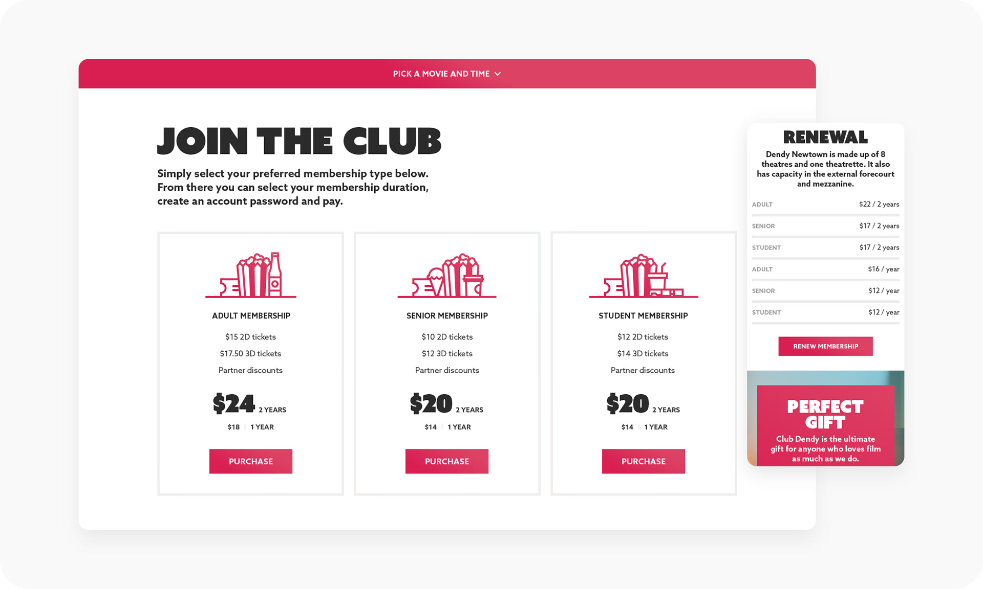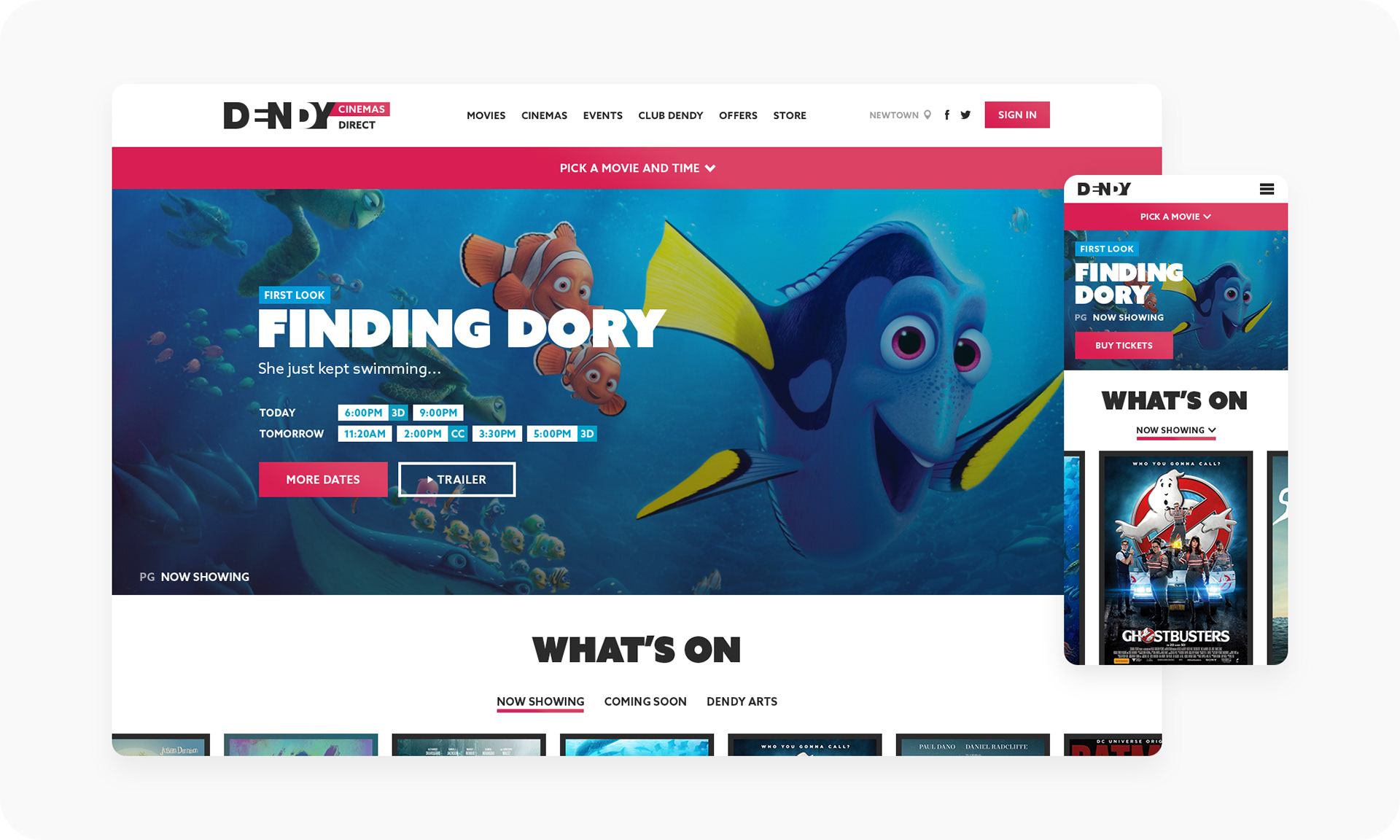 This project was a website redesign and brand refresh for Dendy Cinemas, which is an iconic cinema chain here in Australia. The main goals of the project were to make booking online easier, make signing in and signing up simpler, along with being friendlier to use on mobile.