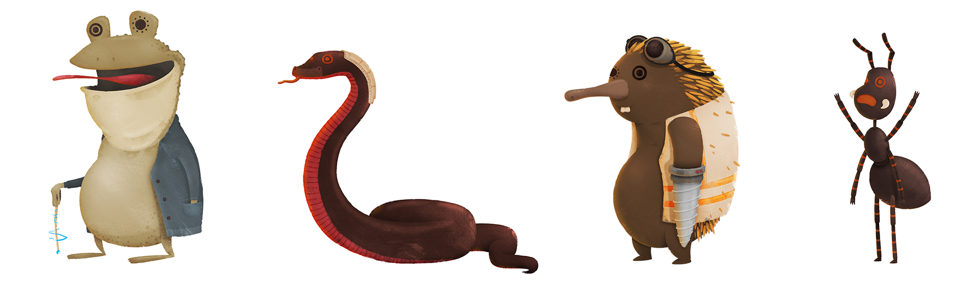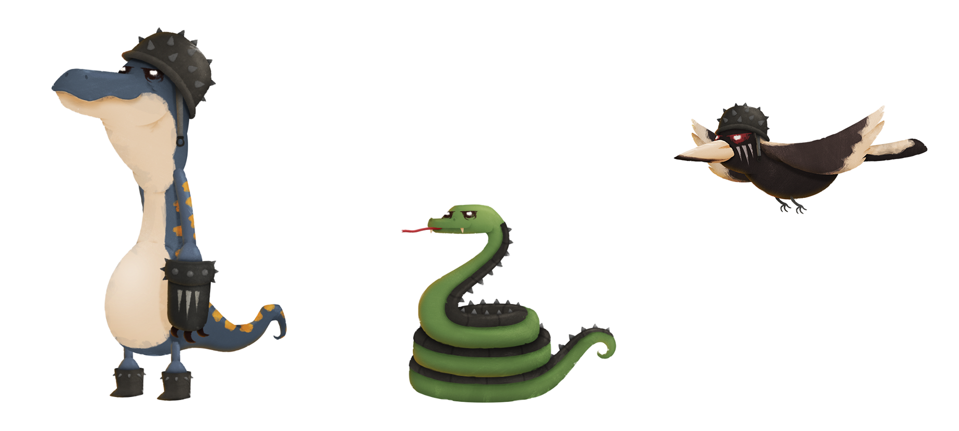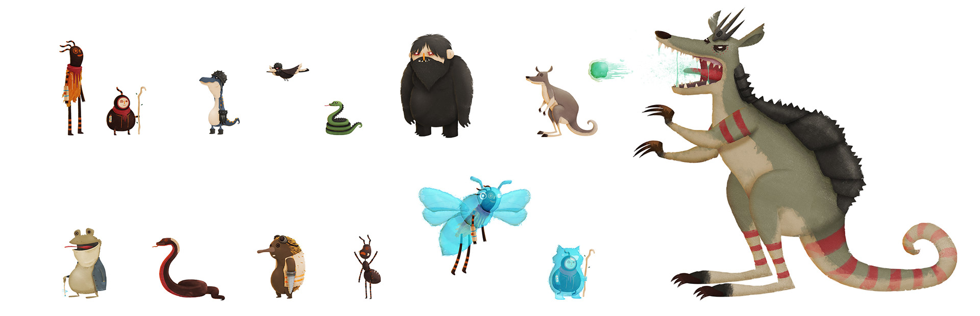 Just like any villain, the Burra'gorang has henchmen. There's a goanna, magpie and snake. I wanted to give them a slightly Mad Max feel, which seemed fitting in this vision of a post-apocalyptic Australia.