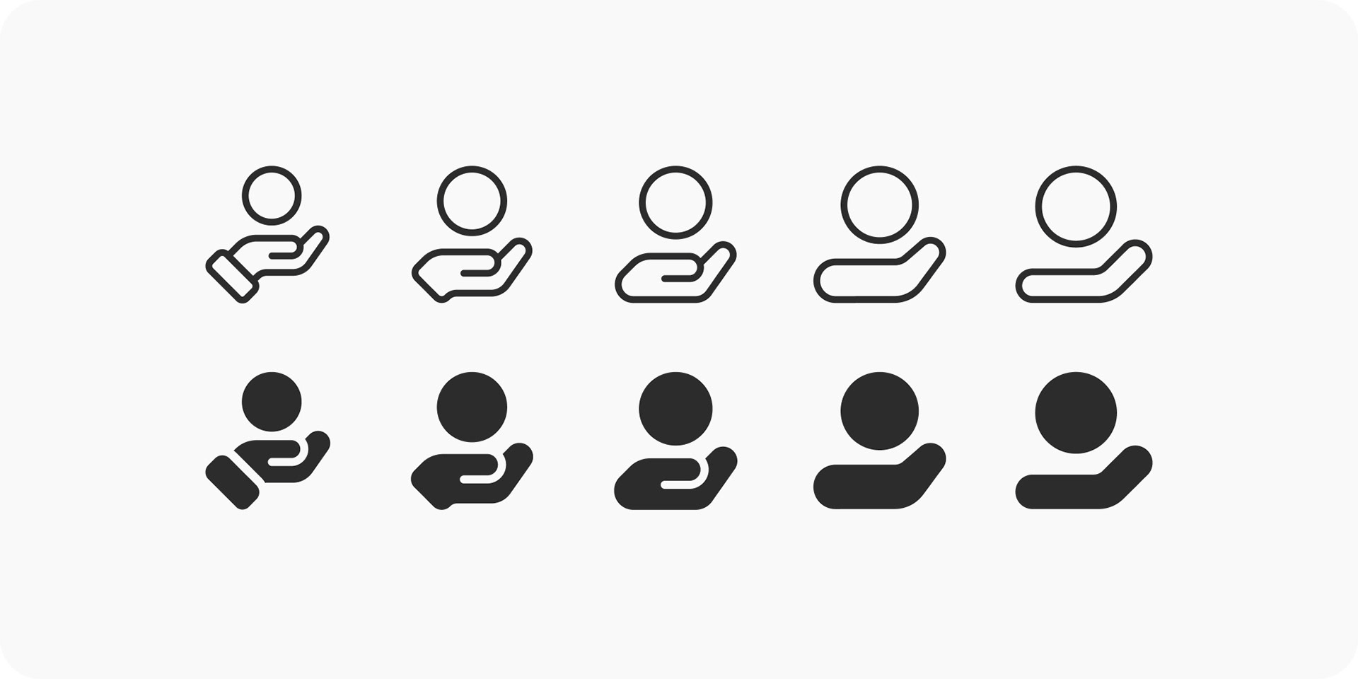 For the logomark, the idea of giving and sharing came to mind. So I took the “giving / receiving hand” symbol as a basis, with it getting further abstracted with each subsequent version.