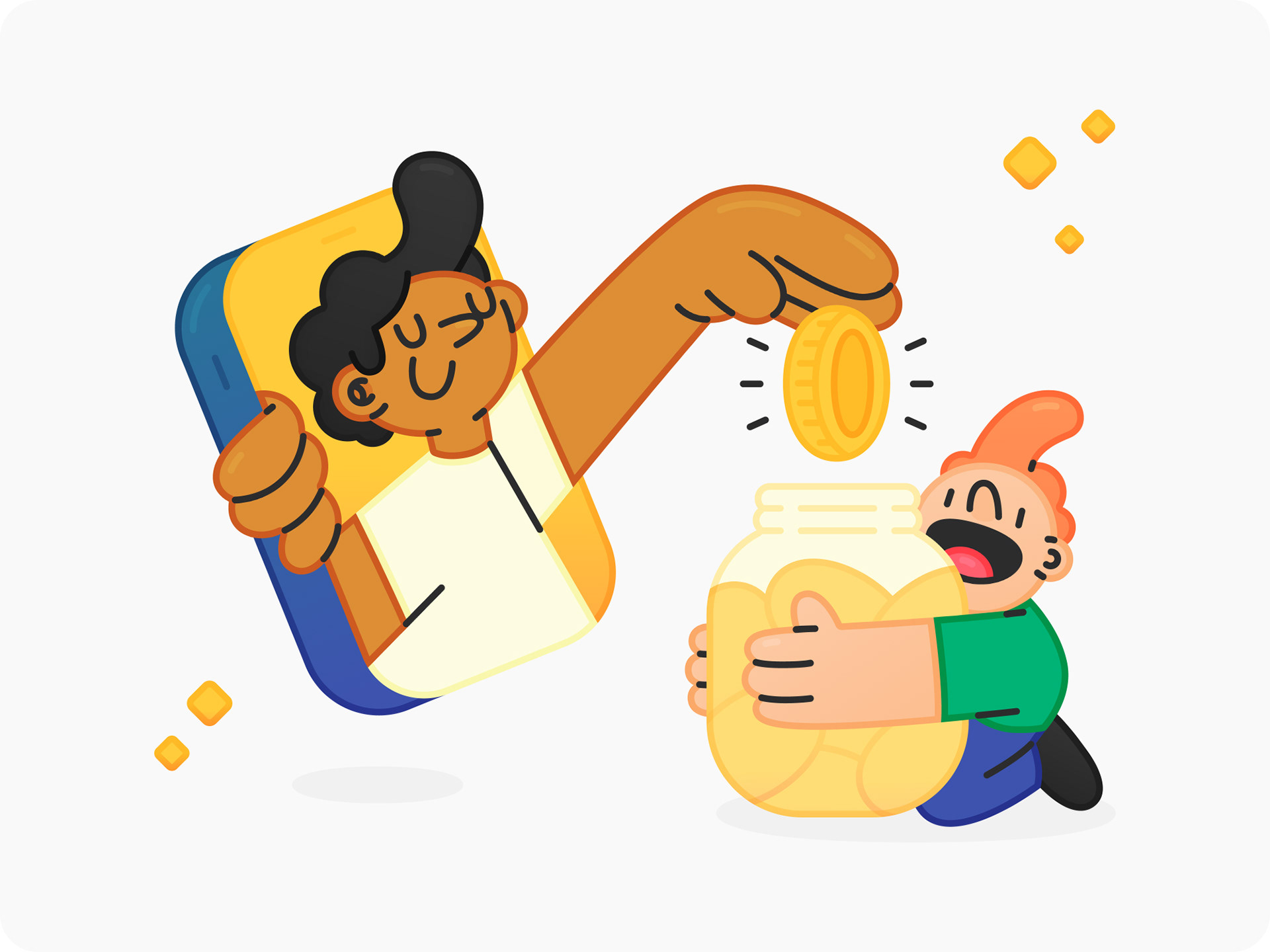 To help tie into the emotional aspect of tipping or donating, smileys are used in the UI that get happier the larger the amount. This also helps further integrate illustrations as part of the brand, setting it apart from other similar platforms.